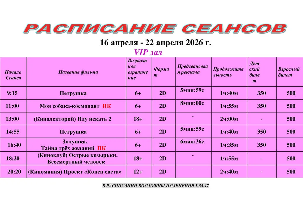 Расписание действительно с 16 апреля по 22 апреля Приятного просмотра 🎞🍿❤